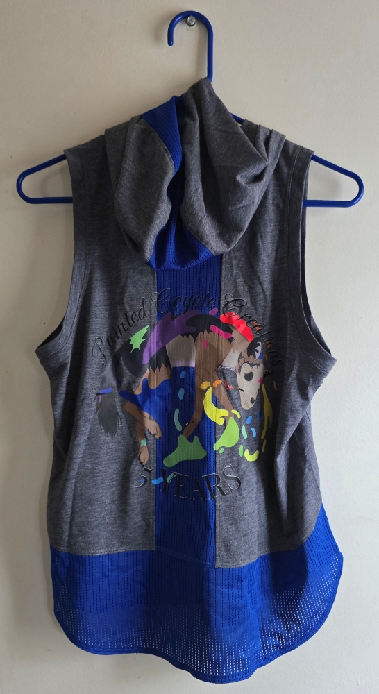 This limited edition hoodie tank marks a milestone for Painted Coyote Creations—half a decade of carving, creating, experimenting, and chasing ideas wherever they lead. The design features an original digital piece created for this release..