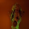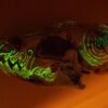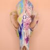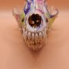 The combination of bold and pastel brings the proper pop of color this skull has to offer to any room. Created using a coyote skull as the base, this piece speaks with excitement regardless of the room or location it’s placed in. Don’t let those vibrant patterns fool you though! This piece packs a sinister but interesting glow-in-the-dark pattern if it’s left to charge in the light.