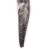 Wrapped around this marbled horn is a pair of soft feathered wings carved out of the buffalo horn. The edge of each individual feather is a gentle brown, something that is carefully achieved by lightly burning the horn on across each feather. A handcarved buffalo horn capable of holding approximately 8 liquid ounces.